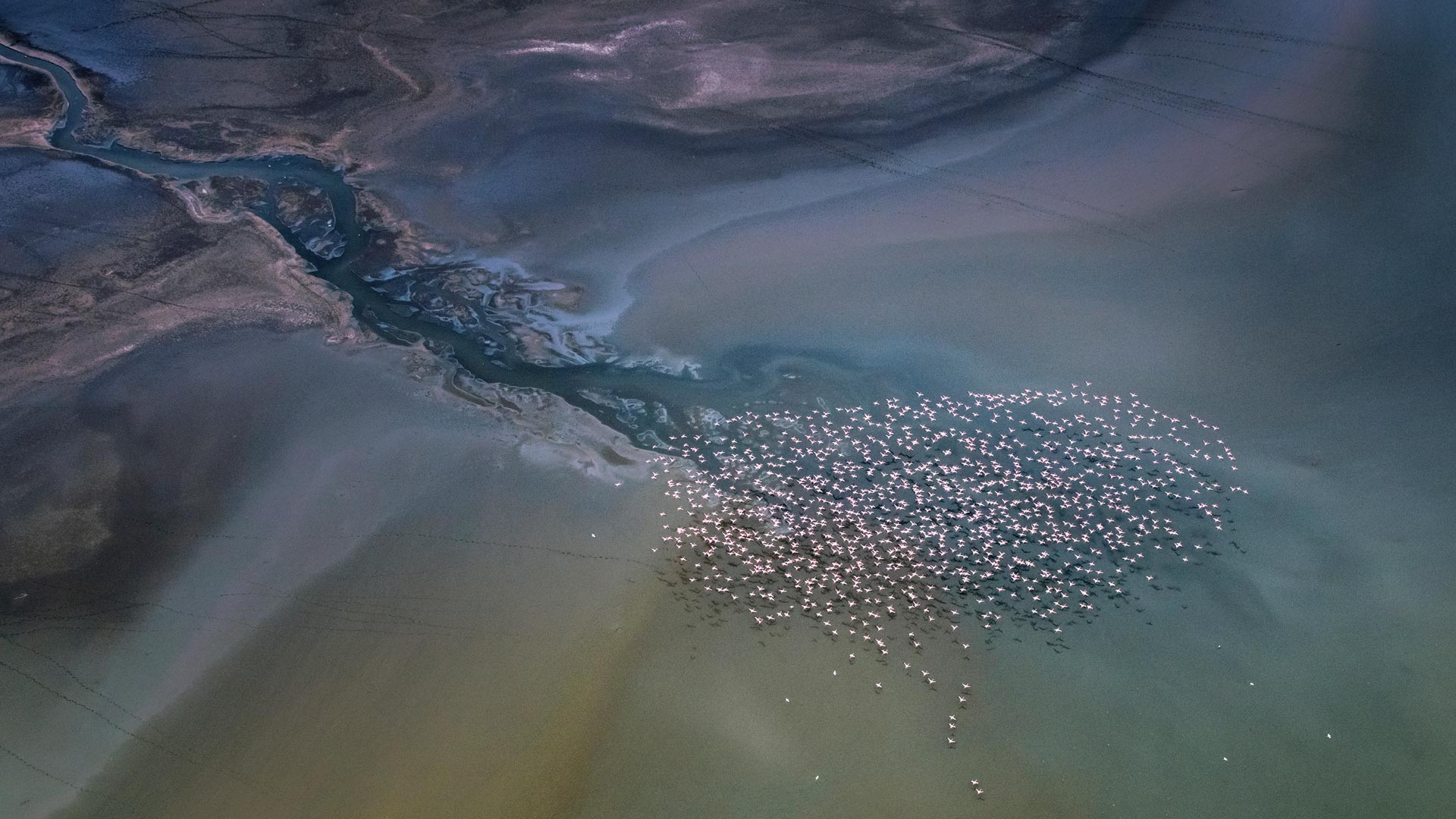 Ist das nicht ein atemberaubender Anblick? Diese Luftaufnahme zeigt eine Vielzahl von Zwergflamingos am Magadisee in Kenia. Sie gehören zu den sechs Arten der Flamingos und sind bekannt für ihr leuchtend rosa Gefieder und ihr außergewöhnliches Fressverhalten. Aufgrund ihrer speziellen Schnabelkonstruktion suchen sie ihre Nahrung vor allem in der Nähe der Wasseroberfläche. Sie kommen vor allem an afrikanischen Natronseen vor. Es handelt sich dabei um Seen, die eine hohe Konzentration von Karbonat aufweisen. Der Magadisee ist einer dieser Natronseen, in denen es von Cyanobakterien und Algen nur so wimmelt und die den Flamingos reichlich Nahrung bieten. Erleben Sie das Schauspiel tausender faszinierender Vögel, die sich am See versammeln und uns die Bedeutung dieses und aller Ökosysteme vor Augen führen.