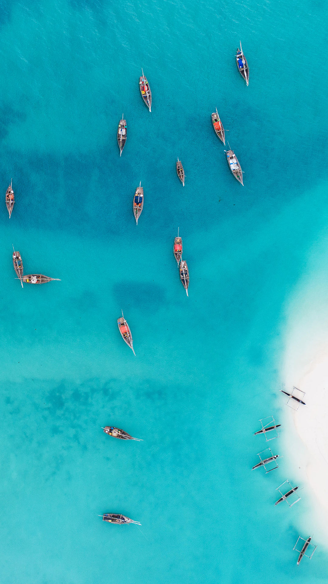 青い海に点在する伝統的な木造船