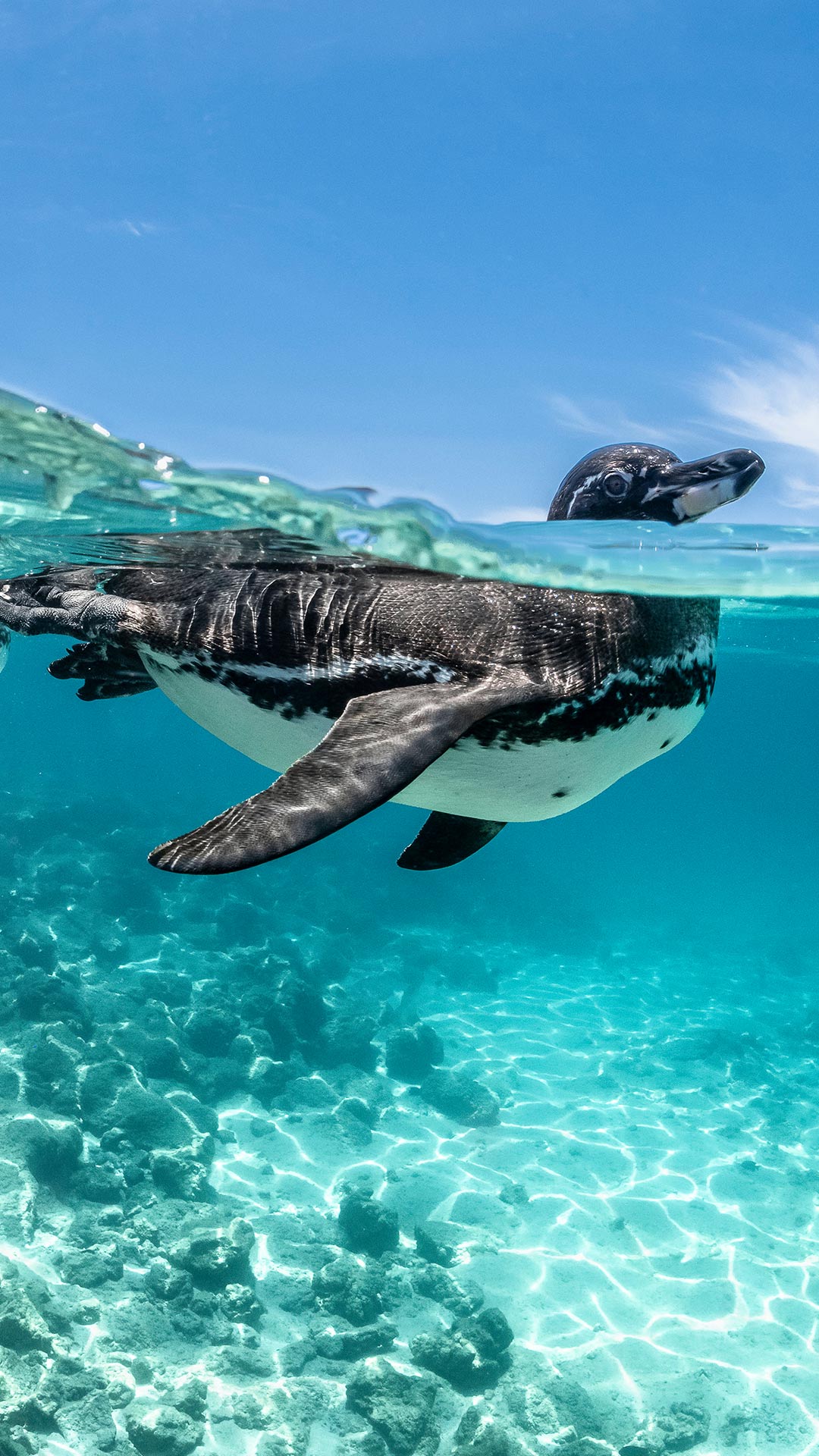Galápagos‑Pinguine beim Schwimmen, Galapagosinseln, Ecuador