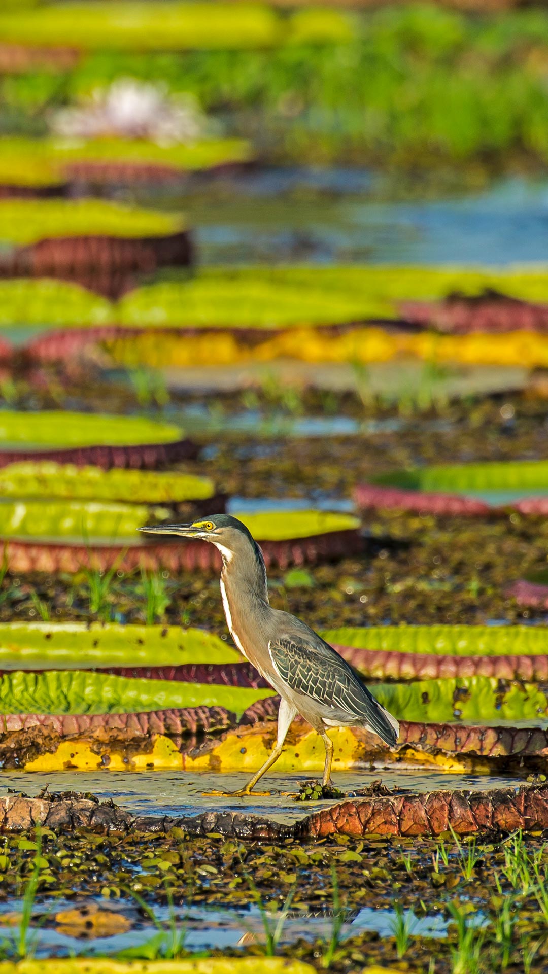 In the lush Pantanal wetlands of Brazil, a striated heron perches on a Victoria water lily. This water bird, also known as the mangrove heron, is about 40 centimetres tall. It is a master of patience, waiting to ambush its prey. It uses clever tactics, such as dropping feathers or insects to lure fish. Common in the wetlands of South America, the striated heron is also found in North America, Australia, Africa, Asia, New Guinea and the Pacific islands.