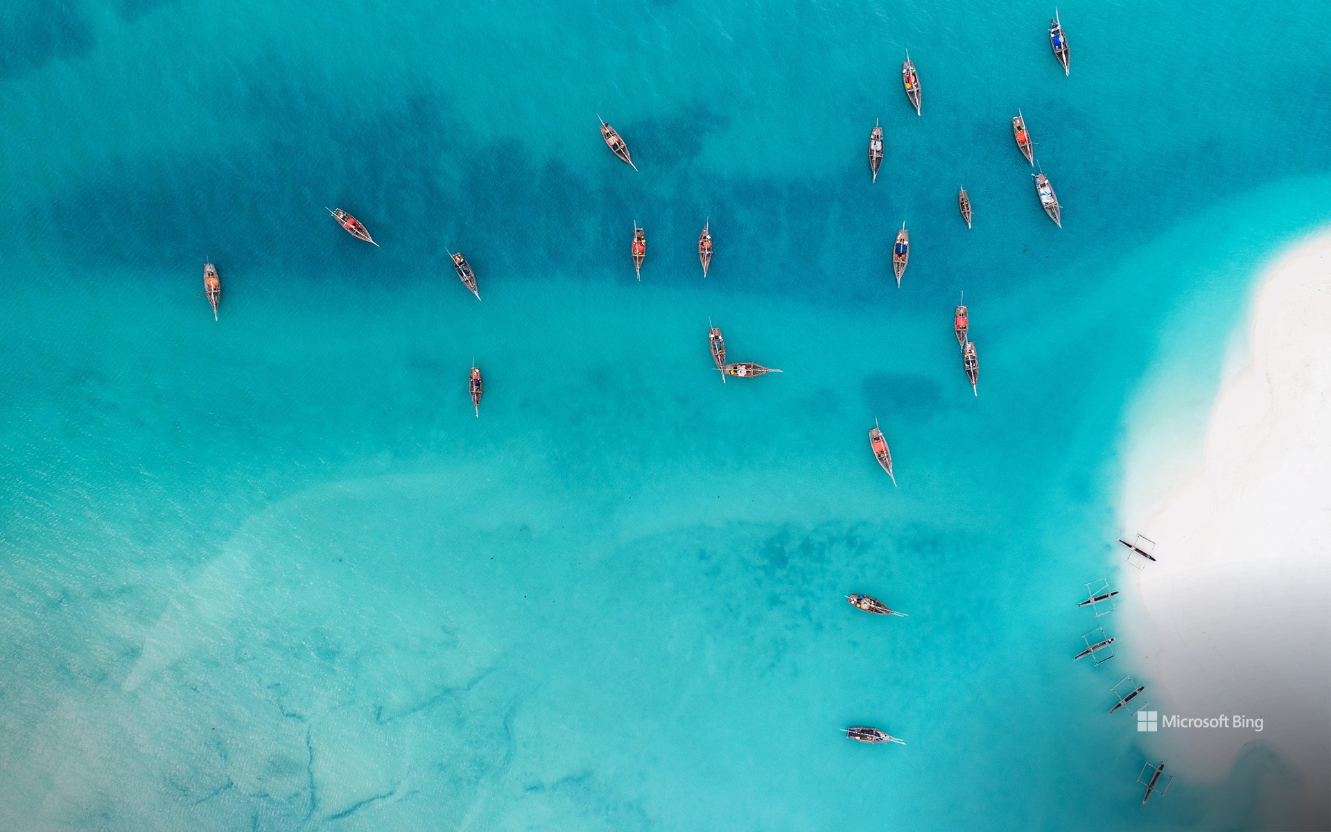 青い海に点在する伝統的な木造船