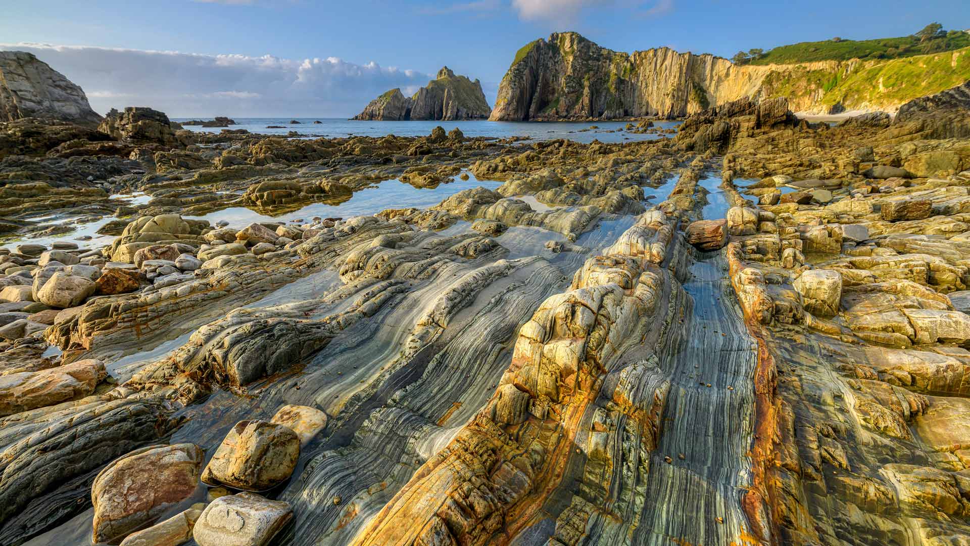 La Principauté des Asturies, en Espagne, est célèbre pour sa nature verdoyante, son riche héritage artistique et sa délicieuse cuisine. Parmi leurs trésors cachés, la Playa del Silencio est une plage en forme de coquillage qui offre une atmosphère paisible, isolée des zones urbaines et loin de l'agitation. Les falaises escarpées et le sable doré en font un lieu idéal pour se détendre. De plus, les grottes à proximité et les activités nautiques offrent des aventures palpitantes. La merveille géologique que vous pouvez voir ici est principalement constituée de quartzite, qui a remplacé progressivement la roche d'origine tout en conservant ses motifs et ses couleurs complexes, certaines ressemblant à du bois ancien.