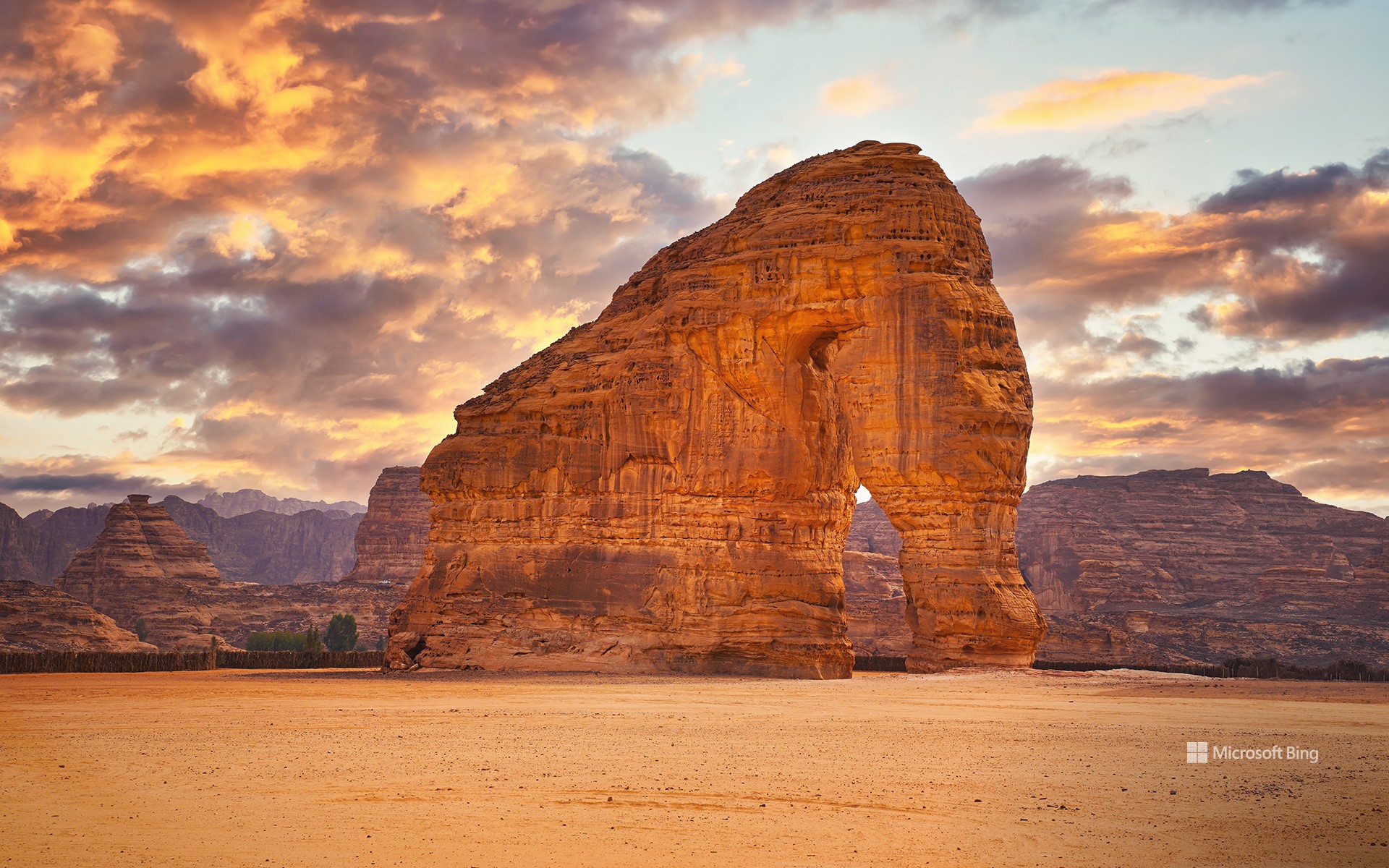 Elephant Rock è una spettacolare formazione di arenaria che la natura ha modellato in milioni di anni in Arabia Saudita. L’azione erosiva del vento e dell’acqua le ha dato l’aspetto di un elefante e l’ha resa una delle attrazioni principali della regione di Al-Ula, in Arabia Saudita. Questa roccia, alta 52 metri, si illumina di rosso al tramonto e contrasta con la sabbia dorata del deserto che la circonda. Non lontano da Elephant Rock, a 11 chilometri di distanza, si trova la città di Al-Ula, testimone di antiche civiltà e di viaggiatori di ogni tipo che hanno attraversato le sue terre aride. Nelle vicinanze, si possono ammirare le tombe nabatee di Hegra e i petroglifi e le iscrizioni che risalgono al 644 d.C.