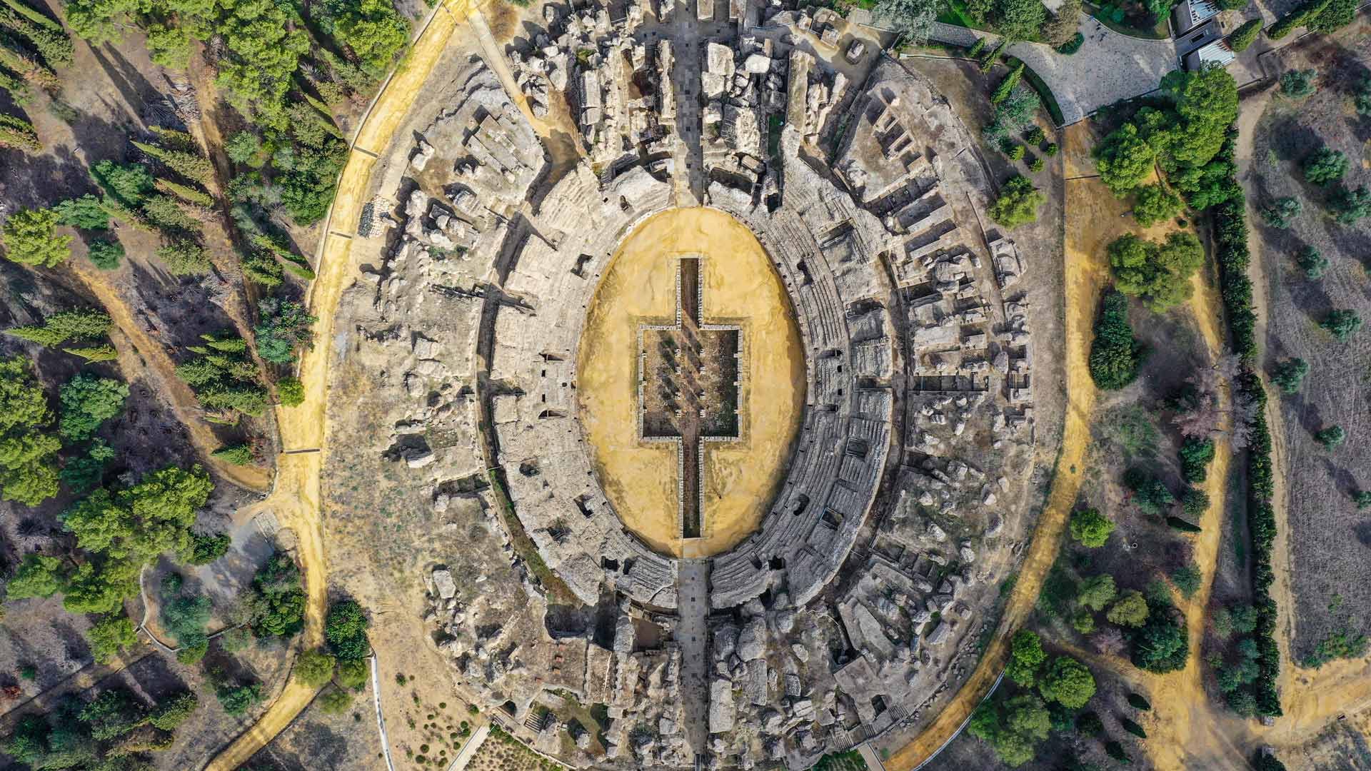 Italica, un'antica città romana a Santiponce, Siviglia, Andalusia, Spagna (© Moses Palermo/Amazing Aerial Agency)