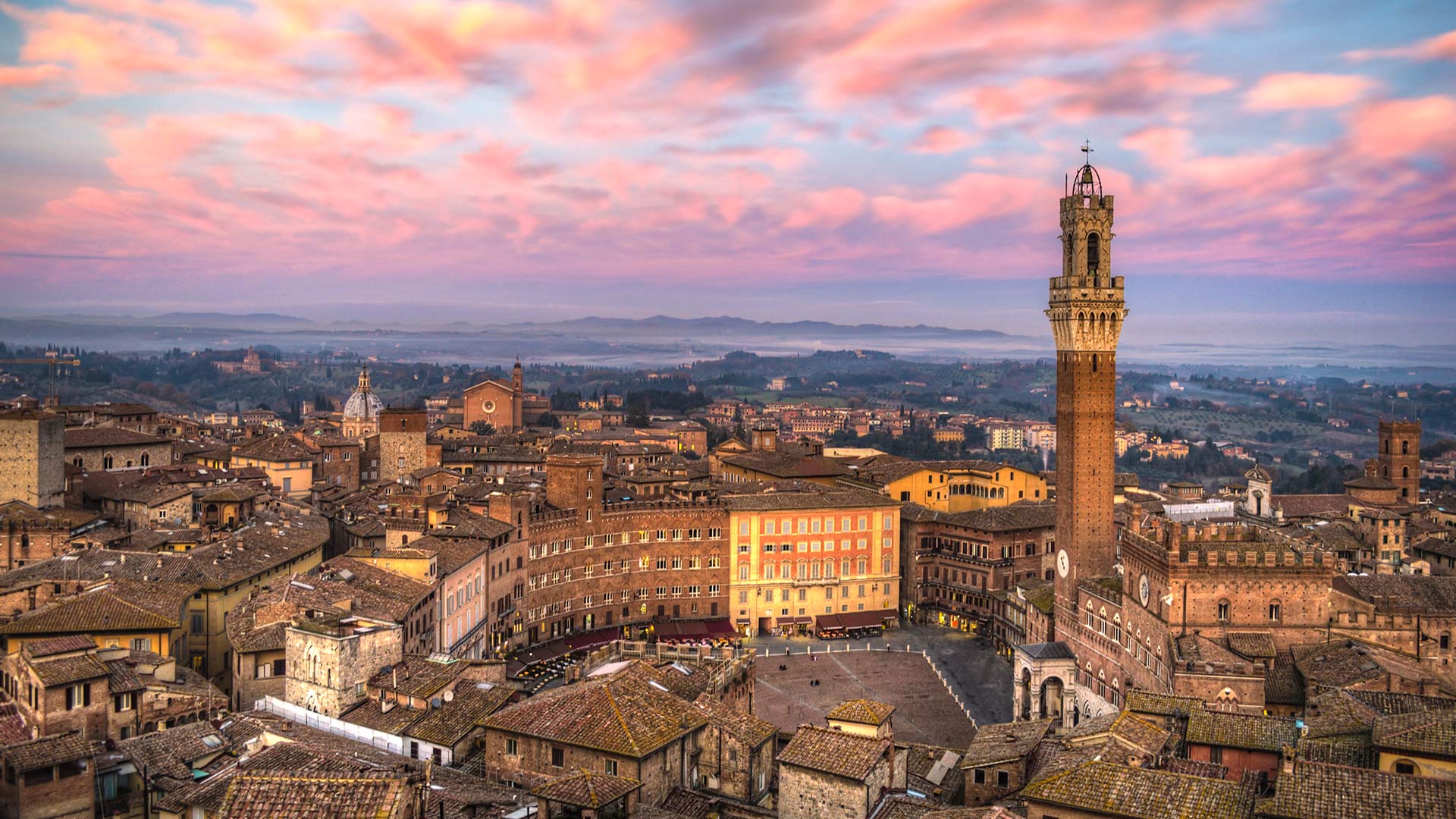 Paesaggio di Siena al tramonto, con Piazza del Campo e Torre del Mangia (© Hani Santosa/Getty Images)