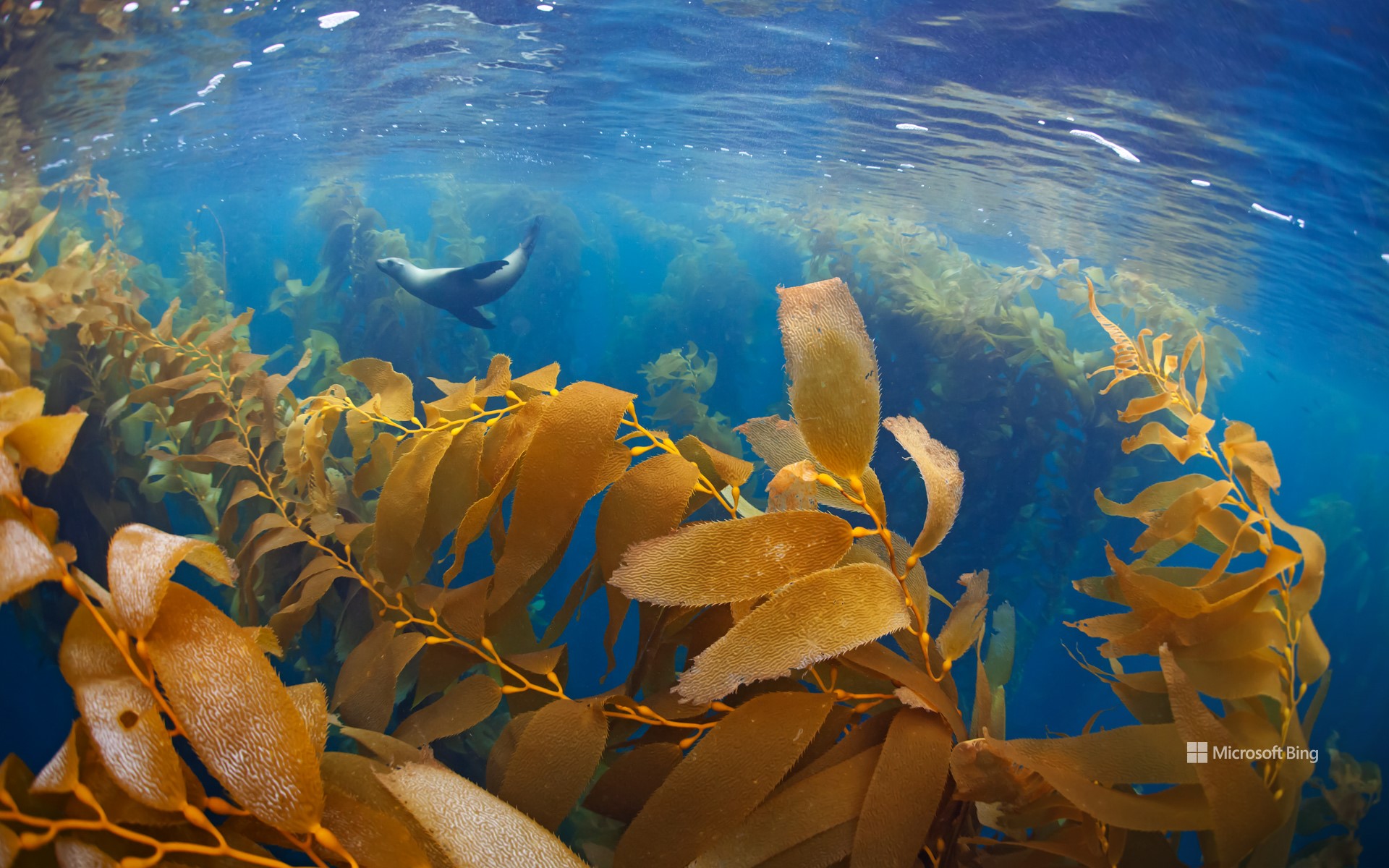 Leone marino della California in una foresta di alghe giganti, Baja California, Messico (© Claudio Contreras/Minden Pictures)