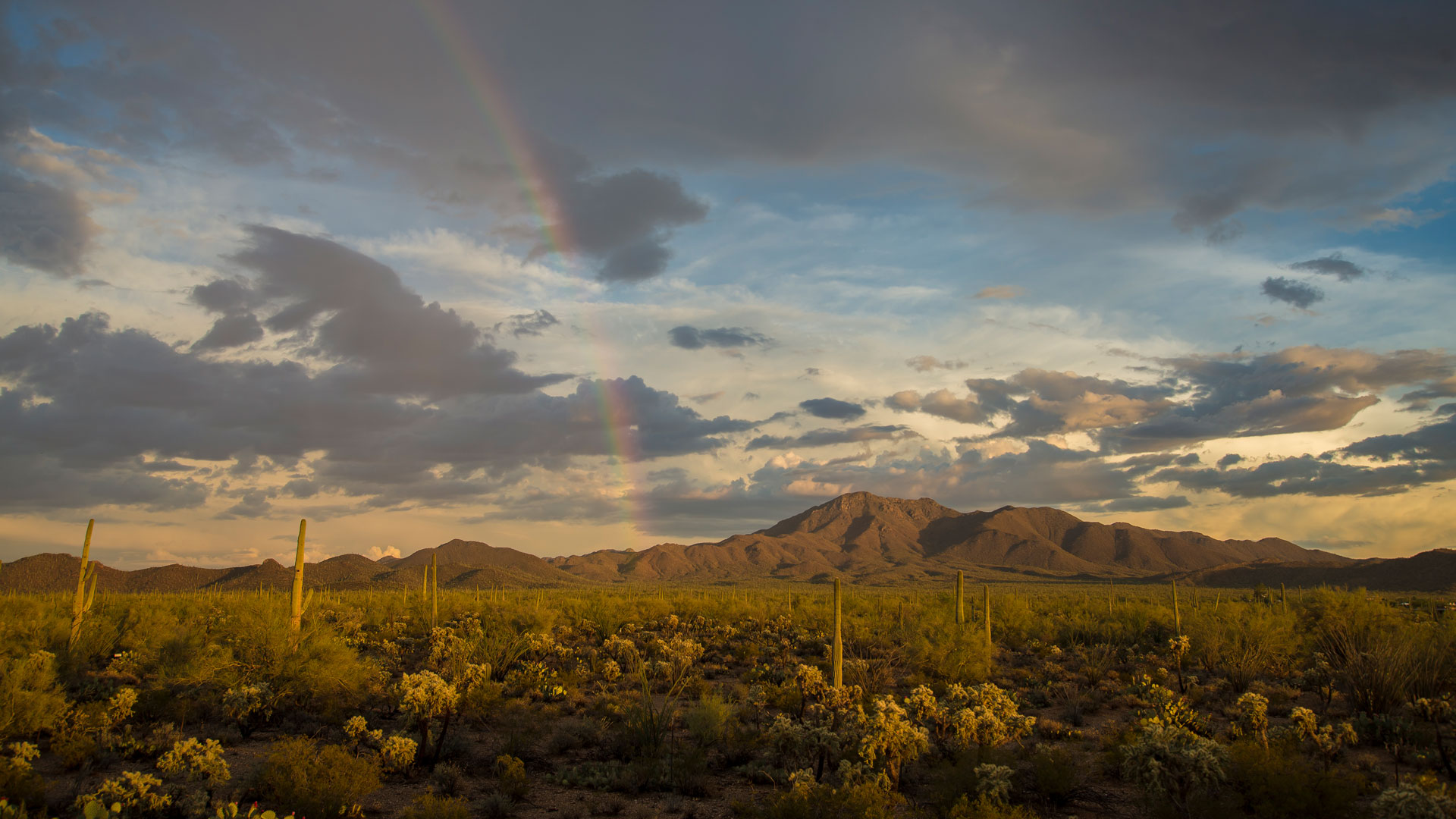 Nel cuore del deserto americano dell'Arizona, il Parco Nazionale dei Saguaro si distingue per i suoi maestosi cactus e il paesaggio spettacolare. Durante una rara pioggia, il cielo si illumina di un meraviglioso arcobaleno, creando un contrasto mozzafiato. In quasi tutte le culture del mondo, l’arcobaleno occupa un posto speciale nel folclore. Per i norreni, simboleggiava il ponte Bifröst, il passaggio tra il regno degli dèi e quello degli uomini, mentre nell'antica Grecia era visto come un messaggio di Iris, la dea dell’arcobaleno, che legava cielo e terra con il suo splendore multicolore.