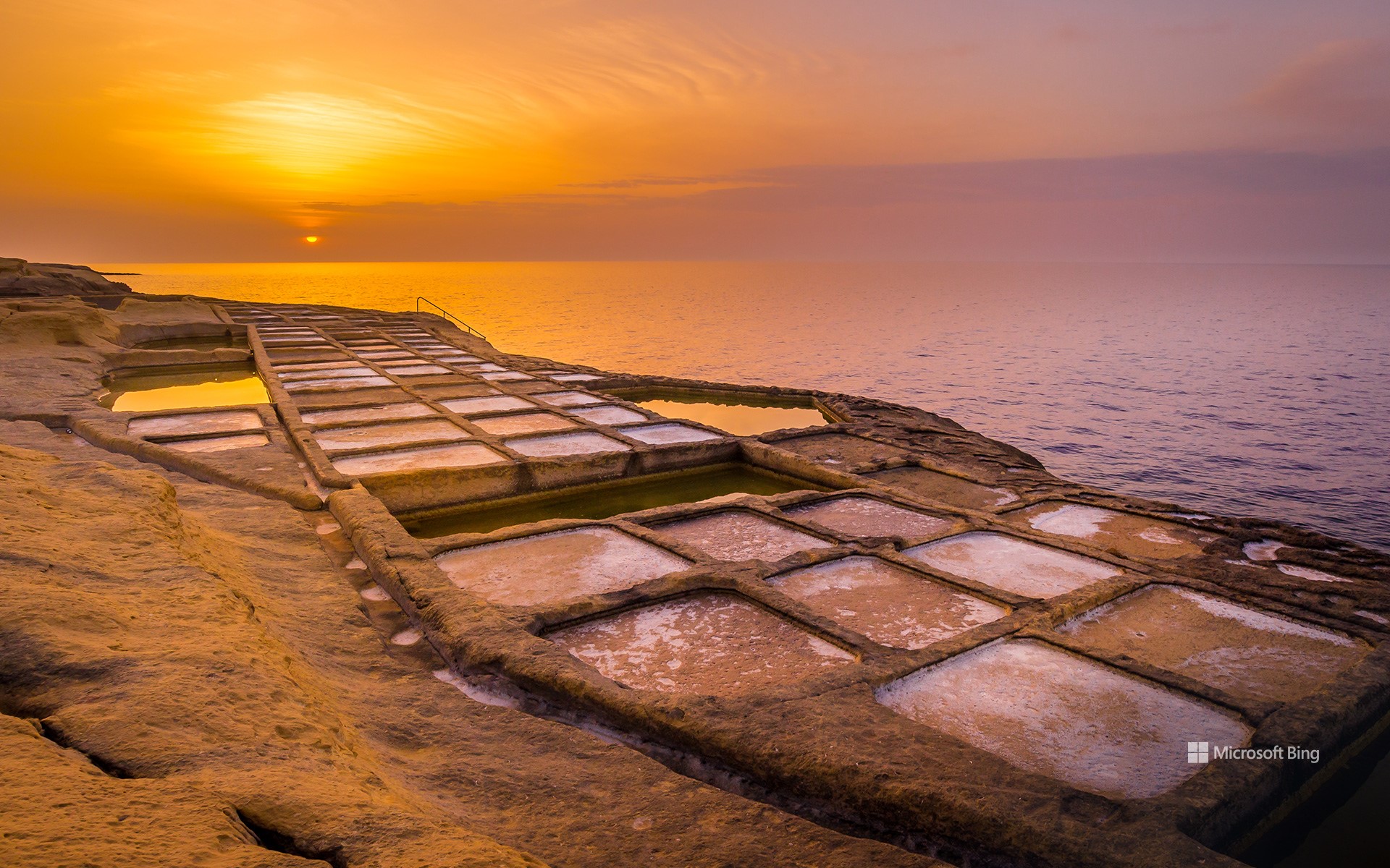 Bacini di evaporazione del sale sull'isola di Gozo, Malta