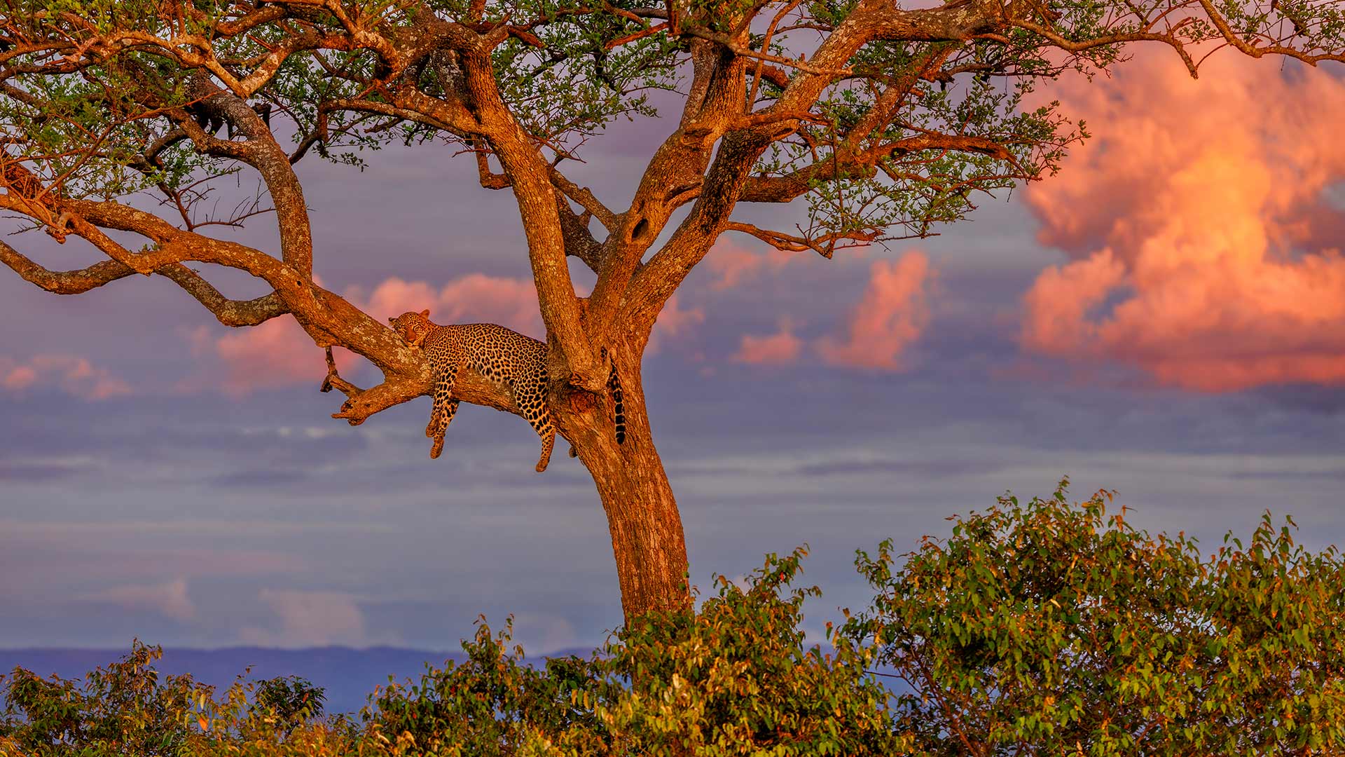 樹上で眠るヒョウ, ケニア (© Klein & Hubert/Nature Picture Library)