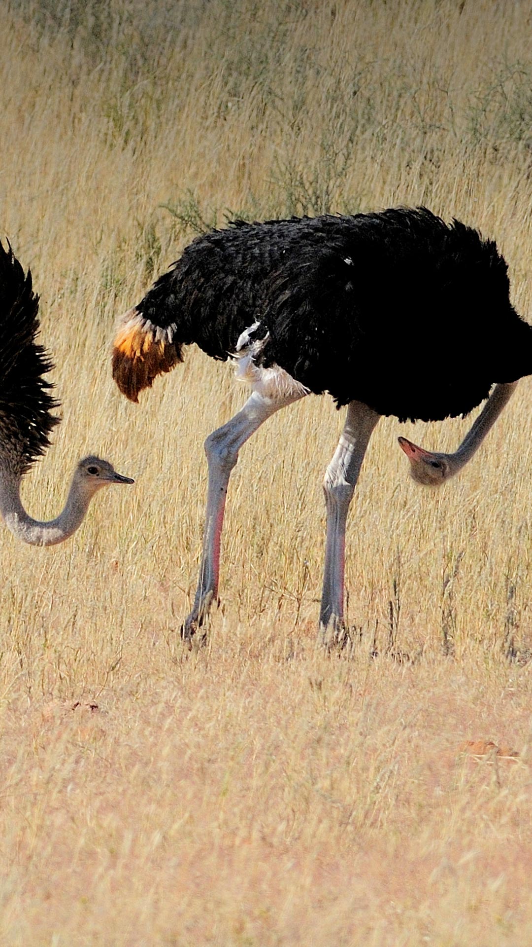 卡格拉格帝边境公园中一对正在求偶的鸵鸟,南非