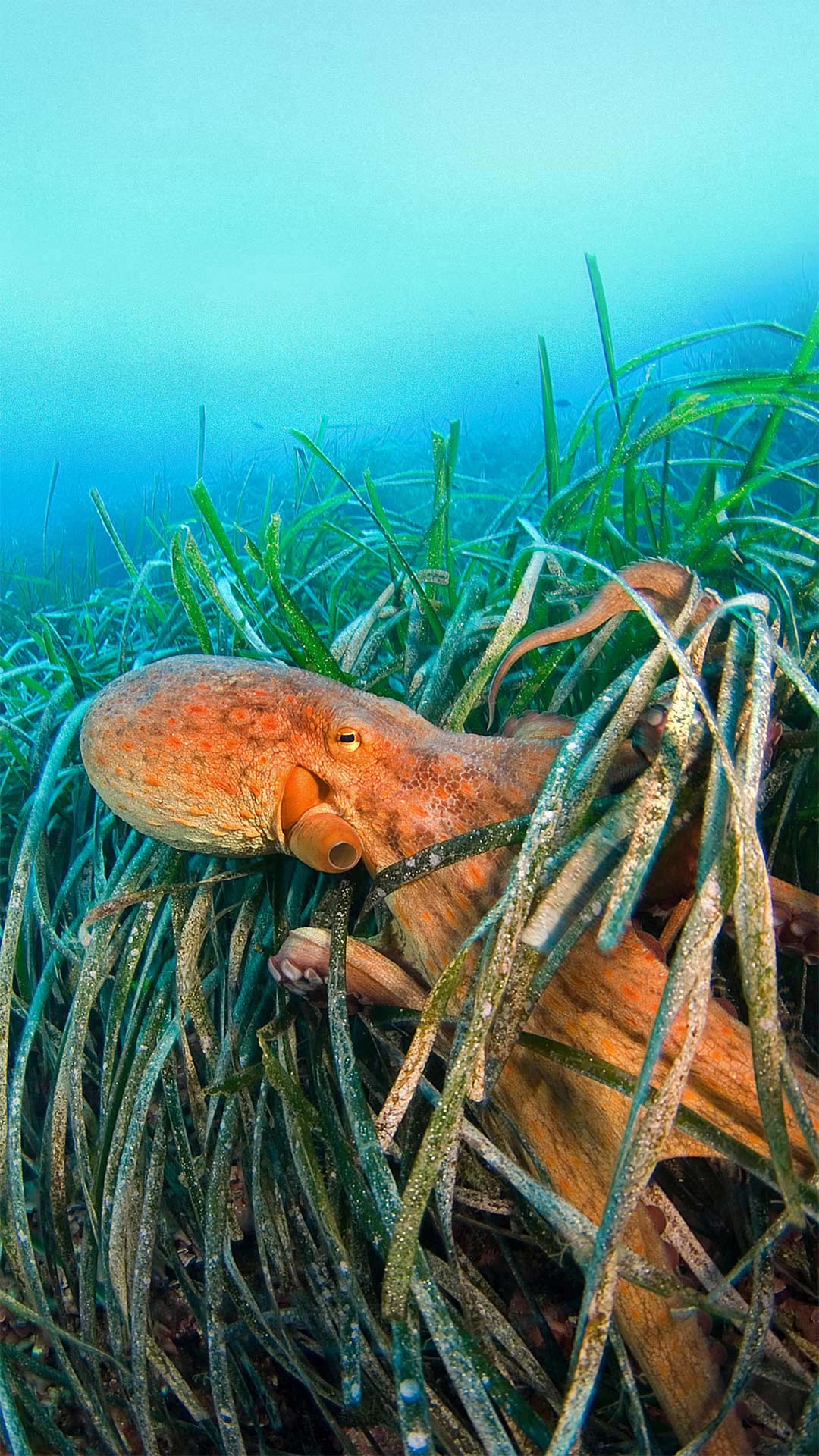 海草中的章鱼,法国利翁湾 (© BIOSPHOTO/Alamy)