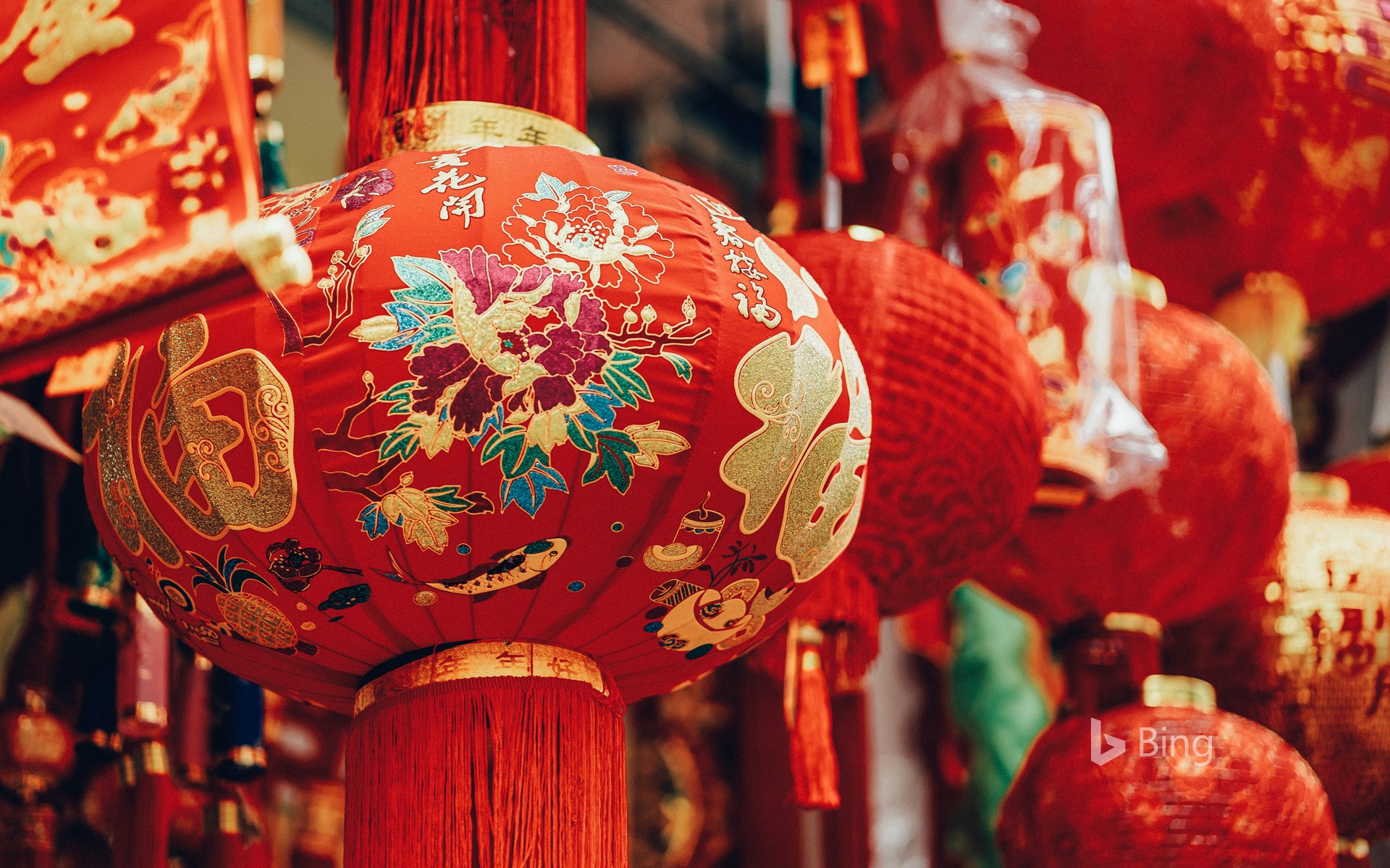 寓意幸福和团圆的春节灯笼,中国