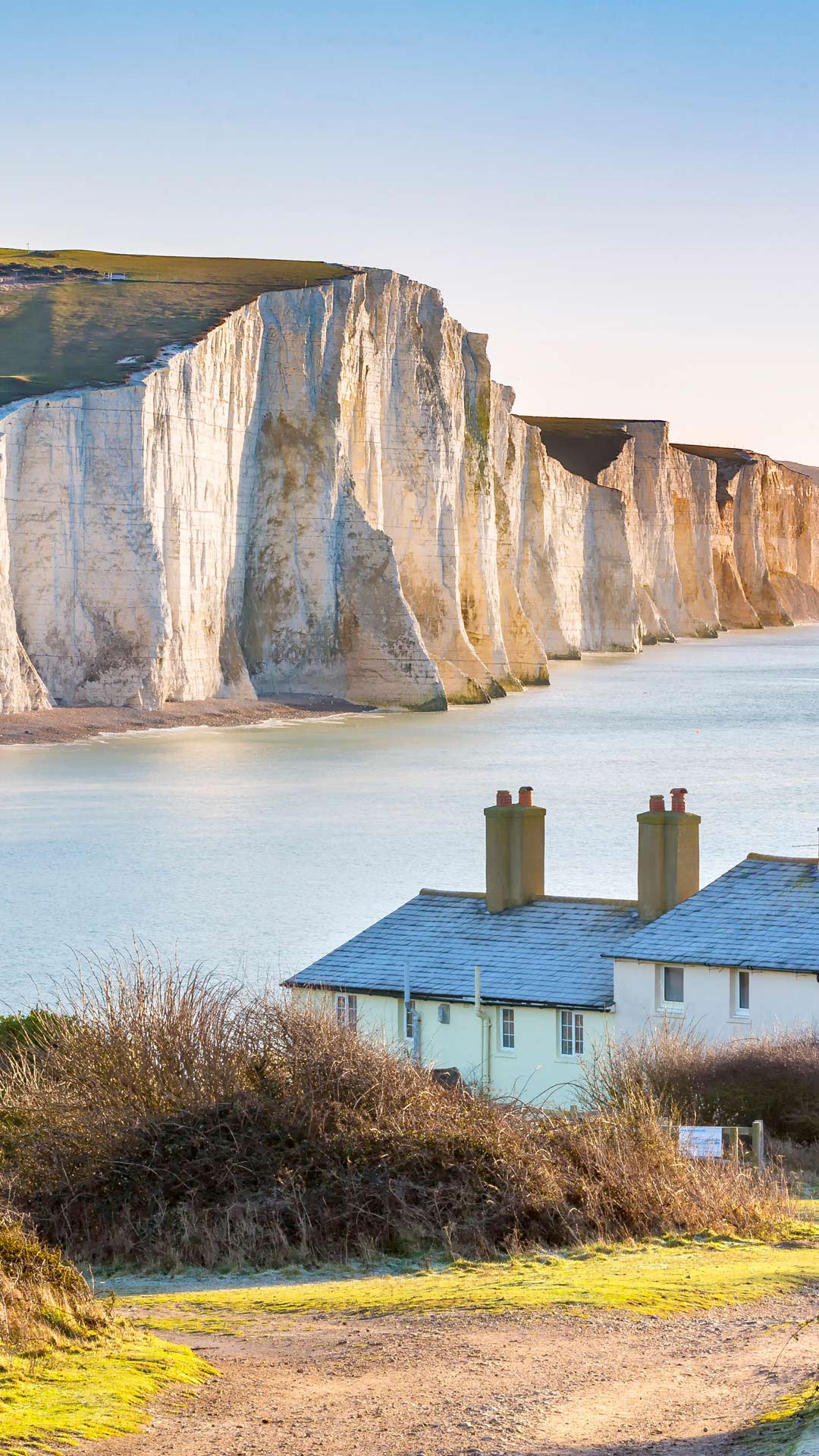 东萨塞克斯郡七姐妹悬崖的绝美景色并不是永存的。虽然英格兰东南部海岸线的其他地方已经修建了防护工程,但这片萨塞克斯郡遗产海岸线估计每年会流失30至40厘米。这些陡峭的悬崖形成于大块白垩脱落留下的垂直表面。海洋在这其中起到了很大的作用,同时雨水渗入白垩层中,雨水结冰时从内部将其断裂开来。不断剥落的岩石使悬崖表面闪闪发光,再加上未受破坏的海岸线,让七姐妹悬崖成为电影中的热门背景。从《赎罪》《哈利波特》到《盗贼王子罗宾汉》,都曾在这里取景。