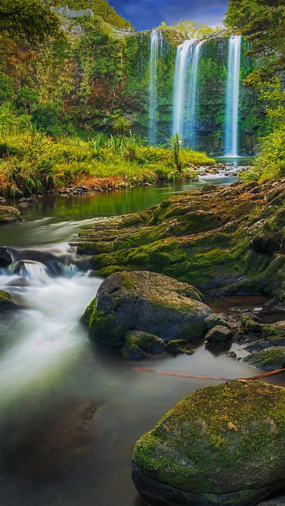 至少自1890年代以来,新西兰北岛上这个郁郁葱葱的伊甸园式的景点,一直是人们带着毯子和篮子来享受午餐的热门场所。旺阿雷瀑布是哈蒂亚河的一部分。照片中我们看到的瀑布,是河流在玄武岩熔岩流上方向下奔涌了85英尺(约26米)。旁边的公园里有一条环形小径,非常适合沿着河岸来一场远足。