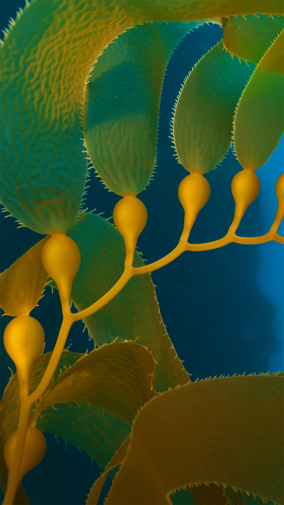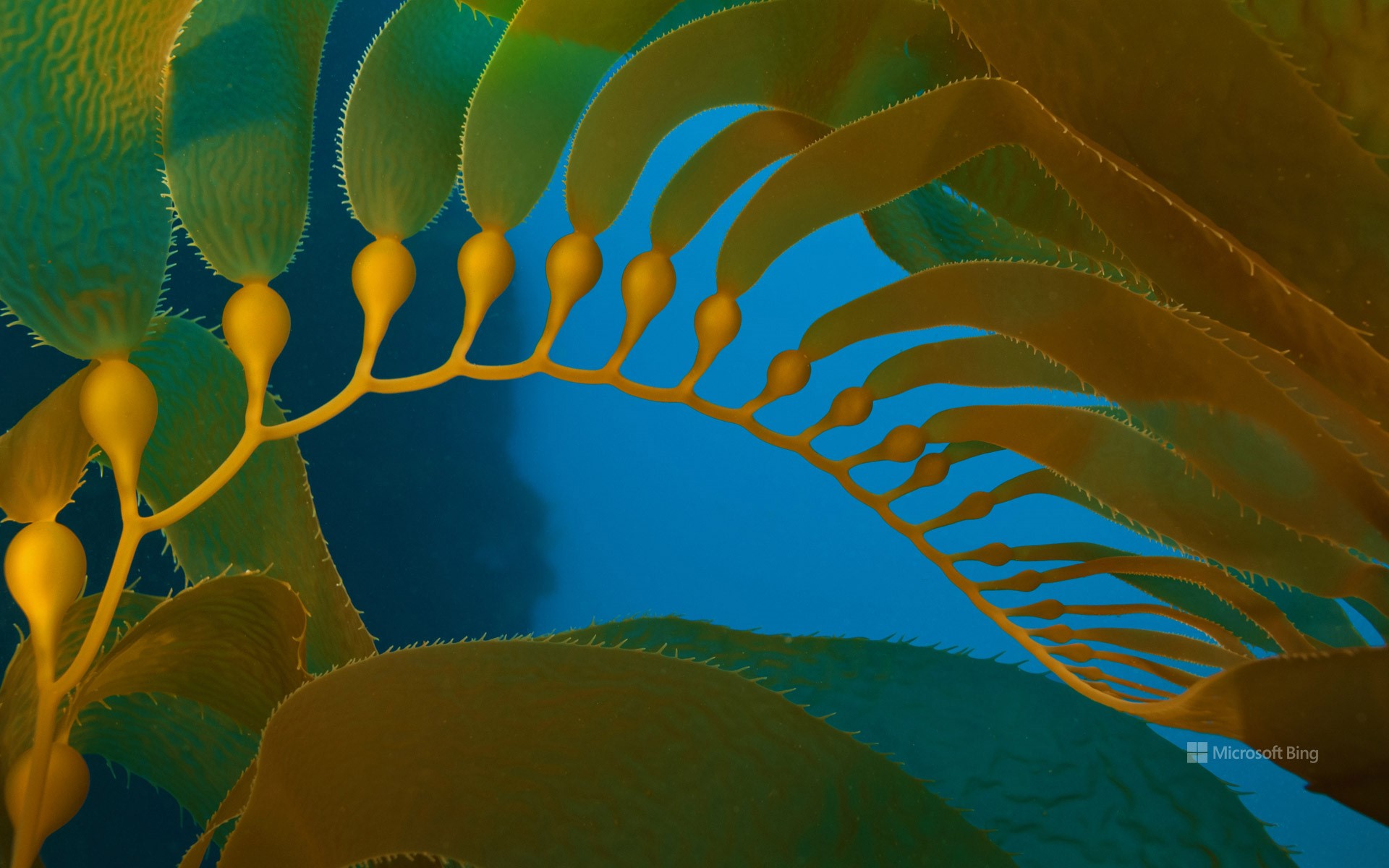 北美太平洋沿岸,高达100英尺的巨型海藻群为大量的鱼类、无脊椎动物和海洋哺乳动物提供了栖息地,就像今天照片里位于加利福尼亚海峡群岛的这片海藻一样。巨型海藻,准确地说是一种褐藻,是所有海藻中最大、生长最快的之一。它每天能生长两英尺!你在这张图片中看到像豆荚一样的气囊有助于海藻漂浮。正如亚马孙雨林的树木一样,海洋中的海藻群对海洋生物和海洋健康至关重要。