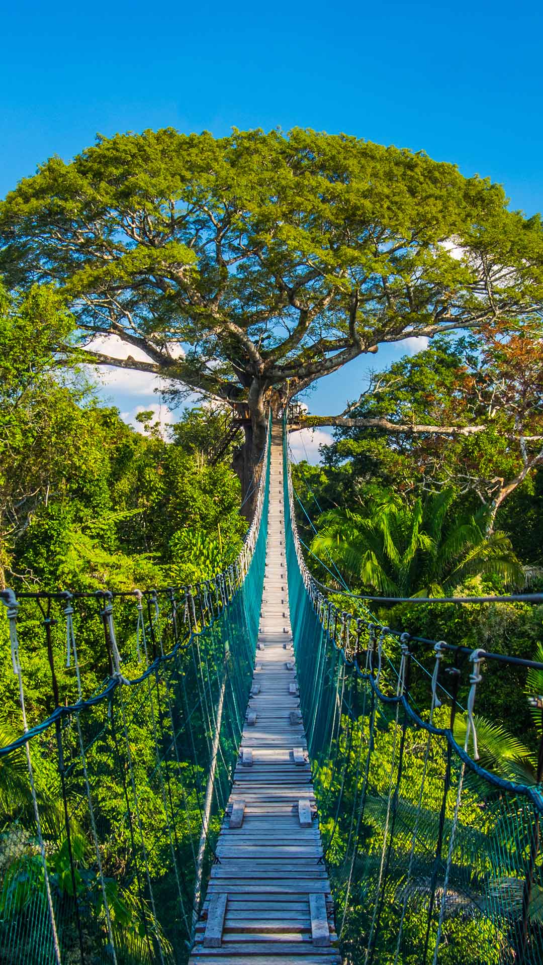 穿过亚马孙雨林中的这座吊桥,意味着你要依靠这些树木作为支撑。同样,地球生物的生存也依赖于亚马孙雨林的这些树木。亚马孙流域储存的碳是全球化石燃料年排放量的10倍以上,这里还是地球上10%已知物种的家园。亚马孙河是世界上流域最广、流量最大的河流,其河流入海流量占全球的20%。从安第斯山脉到大西洋,亚马孙河流经了八个国家。今天的照片拍摄于秘鲁的坦博帕塔国家保护区,这里是巨型角雕、金刚鹦鹉、美洲虎、水豚、树懒和巨型水獭的家园。