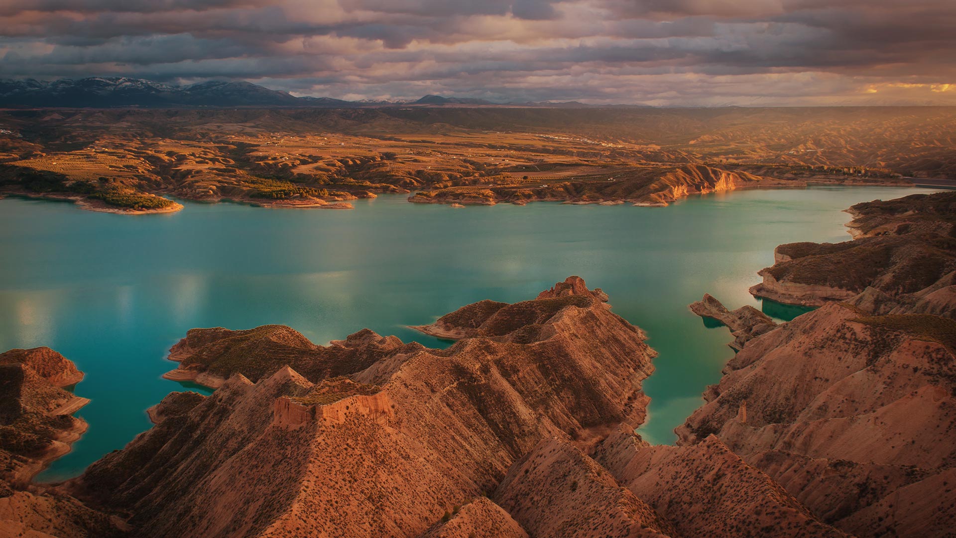 今天照片上这个宁静美丽的湖泊是内格拉廷湖,是西班牙安达卢西亚最大的淡水湖之一。内格拉廷湖位于格拉纳达世界地质公园 的中心,由瓜迪亚纳梅诺尔河上的大坝截流而形成,是自然爱好者的天堂。湖边有一个帆船俱乐部,举办各种水上活动,这也使得内格拉廷湖成为了一个亲近大自然和放松身心的度假胜地。湖周围还有壮观的悬崖、沟壑和沙漠。无论春夏秋冬,这里的风景都美得让人窒息。