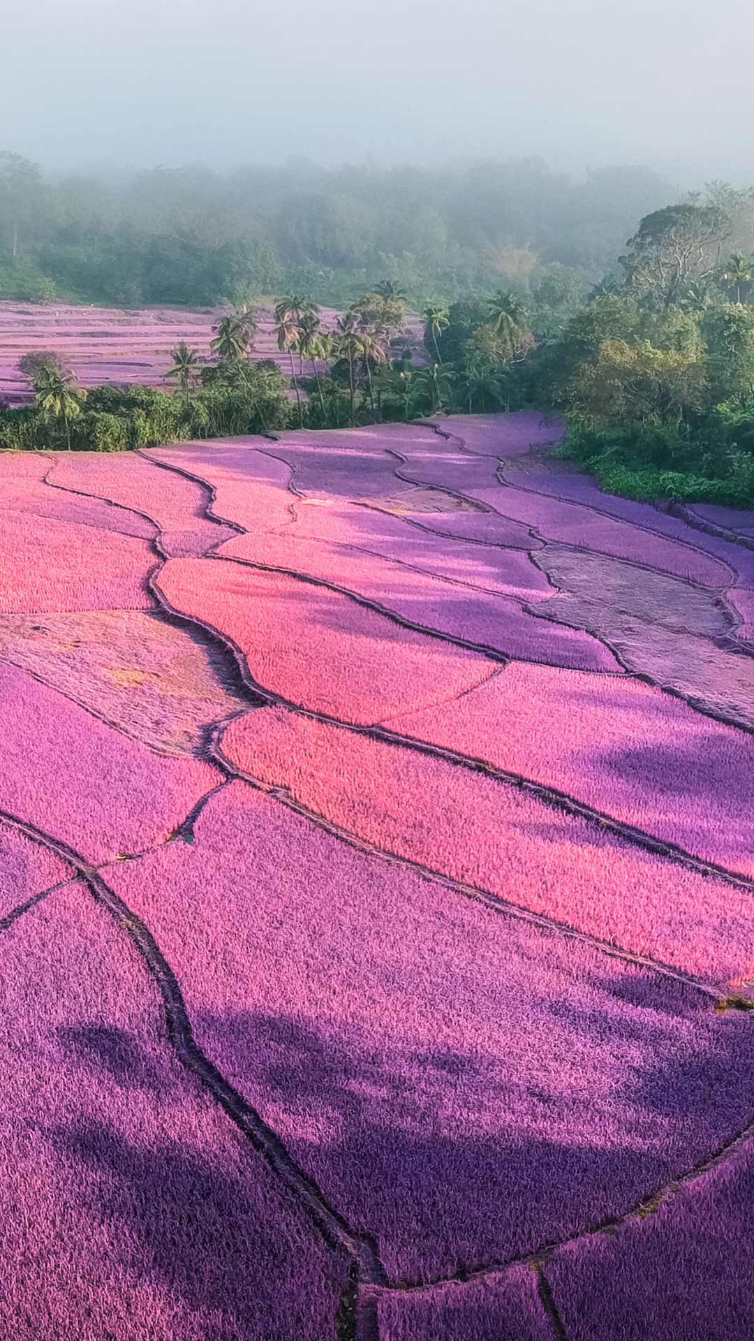 日出时分薄雾笼罩下的薰衣草田,印度 (© Amith Nag Photography/Getty Images)