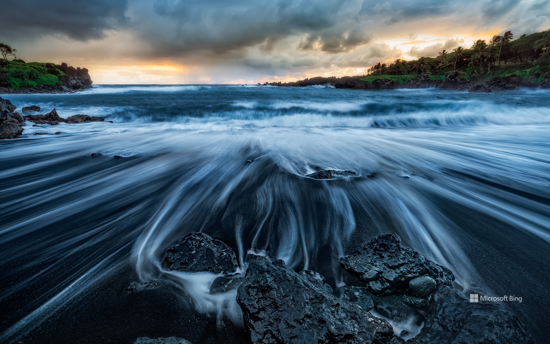 怀阿纳帕纳帕州立公园的黑沙滩,茂宜岛,夏威夷,美国 (© Matt Anderson Photography/Getty Images)