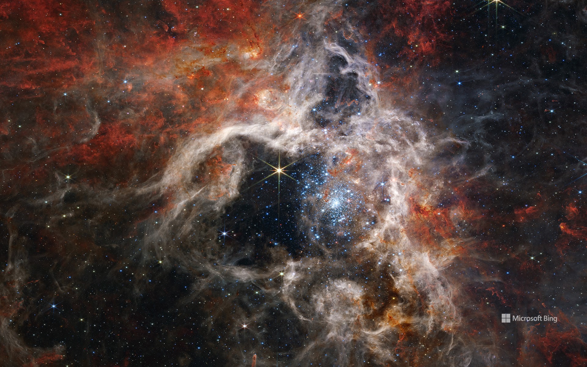 Giovani stelle in formazione nella Nebulosa Tarantola, Telescopio Spaziale James Webb (© NASA, ESA, CSA, STScI, Webb ERO Production Team)