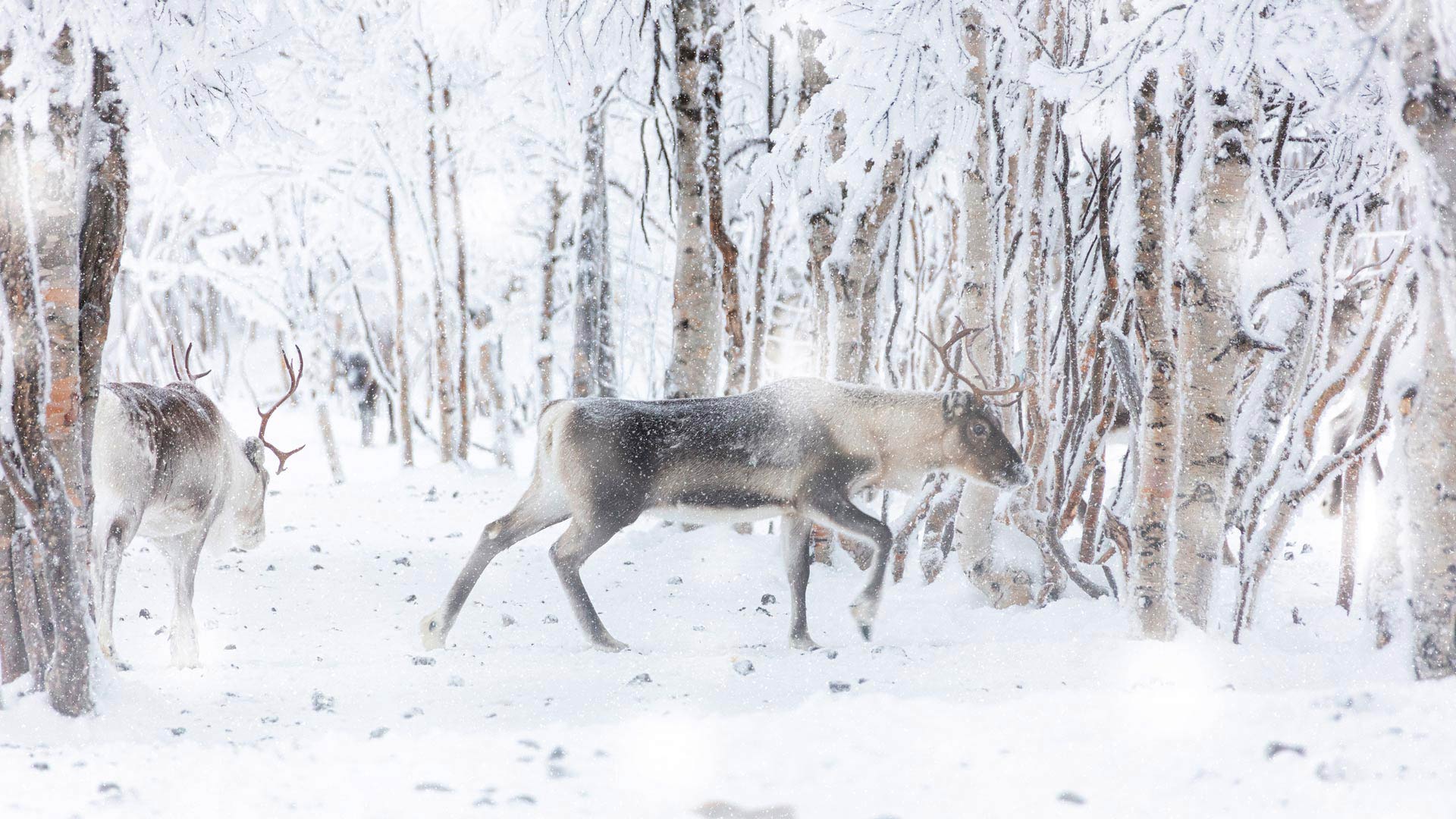 Renne durante una nevicata invernale, Lapponia, Finlandia (© Roberto Moiola/Getty Images)