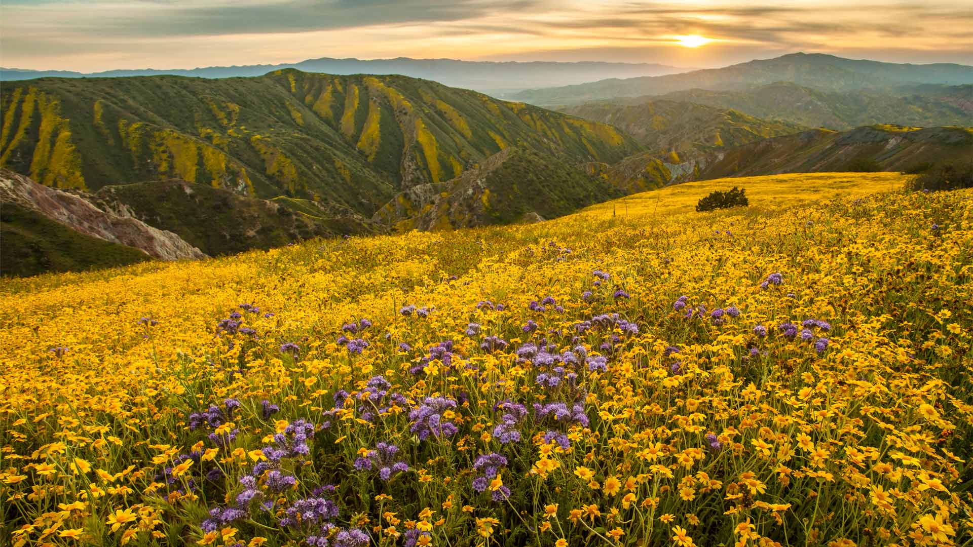 画像は、カリフォルニア州サンルイスオビスポ郡南東部にあるカリゾ平原国定記念物で起きたスーパーブルーム。広大な平原が、黄色や紫などの色鮮やかな花で覆われている光景は、まるで自然が織り成す巨大な絵画のようです。