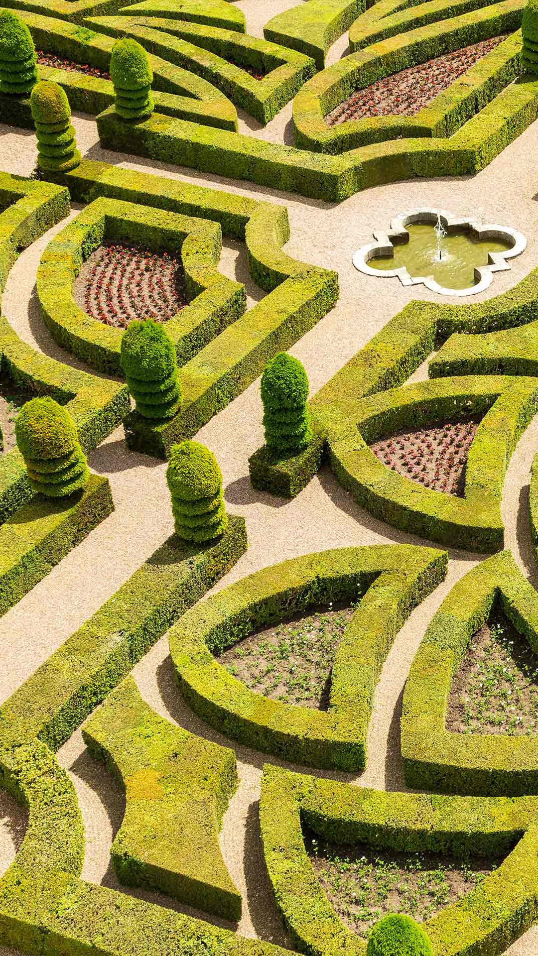O gramado do vizinho é sempre mais verde — especialmente quando esse é o jardim do Castelo de Villandry. Localizado no Vale do Loire, na França, Villandry se destaca não pelas suas torres, mas pelos seus jardins. Construído no século XVI por Jean le Breton, um ministro do rei Francisco I, o castelo foi projetado para o conforto, com grandes janelas e um layout acolhedor. Sua área verde é organizada em terraços com temas distintos, alguns com padrões geométricos e outros com um retiro sereno.