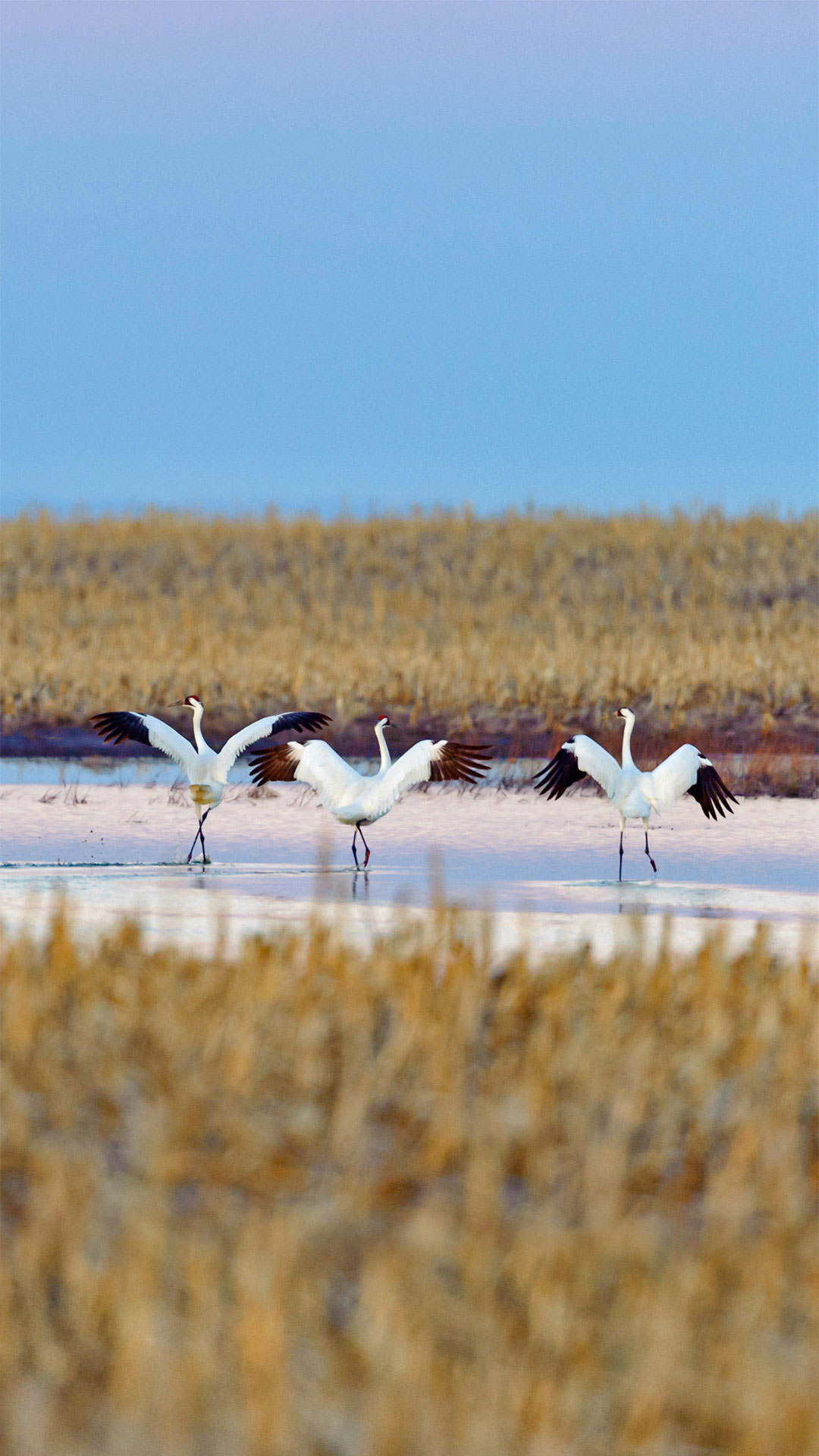 春季迁徙时正准备起飞的美洲鹤,南达科他州 (© Gerrit Vyn/Minden Pictures)