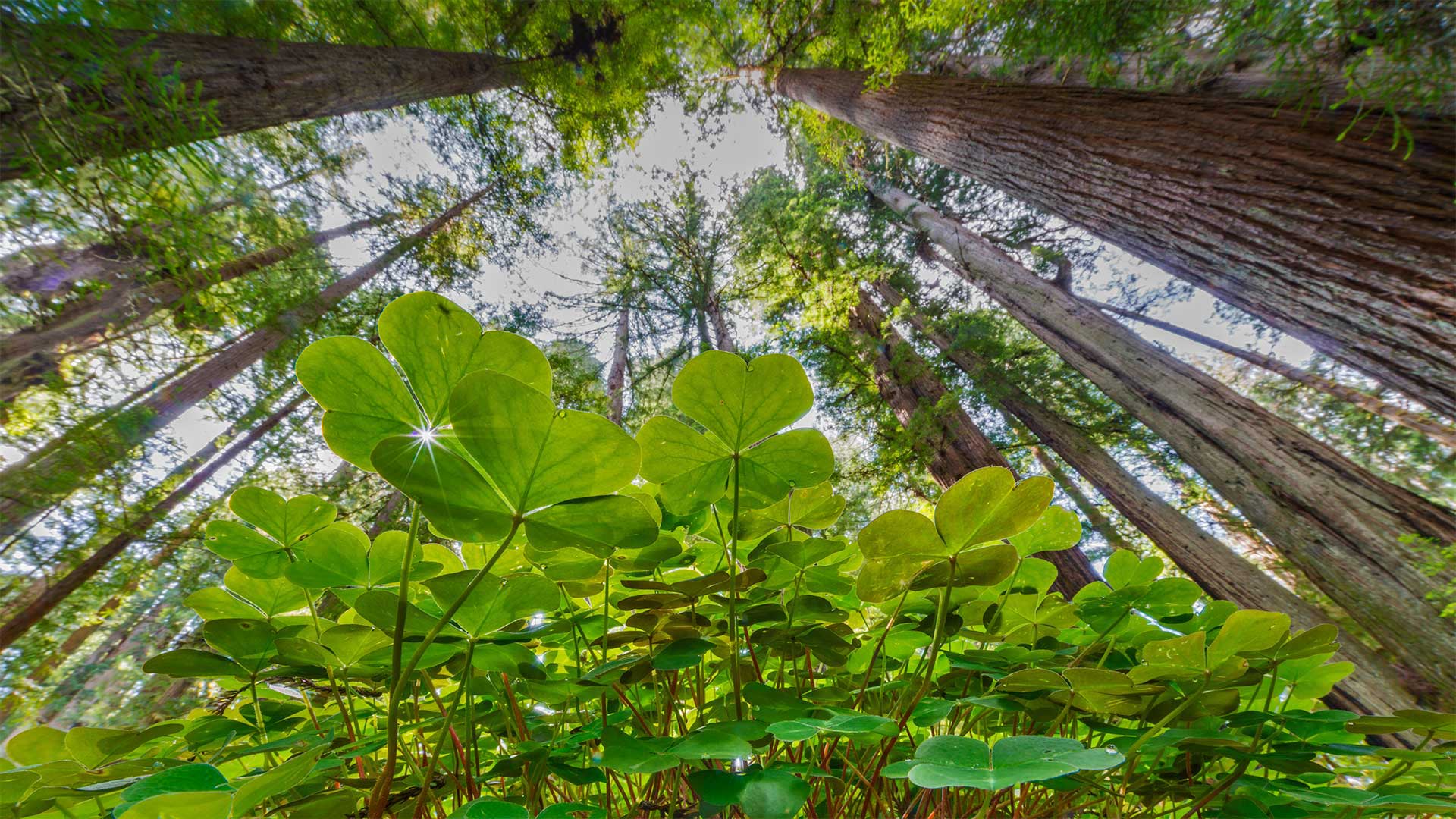 生机盎然的酢浆草和红杉树,美国大草原溪红杉州立公园 (© Jack Dykinga/Minden Pictures)
