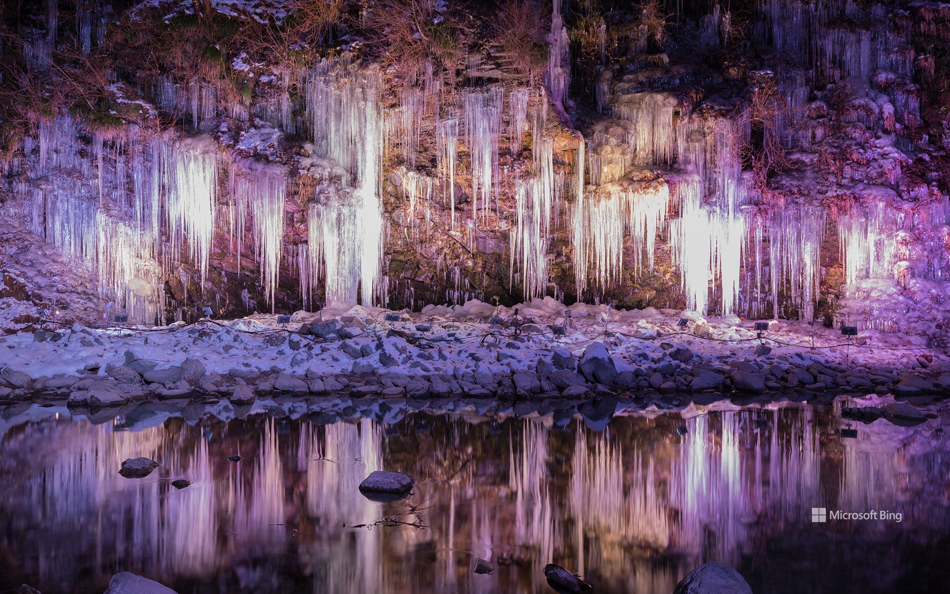看,这就是日本秩父市的三十槌冰柱奇观!这道令人叹为观止的天然冰墙宽约98英尺,高约33英尺,由泉水沿岩壁流下结冰而成。这一景观每年仅在1月中旬至2月中旬开放,夜幕降临时还会点亮彩灯,仿佛置身于冬日童话世界。